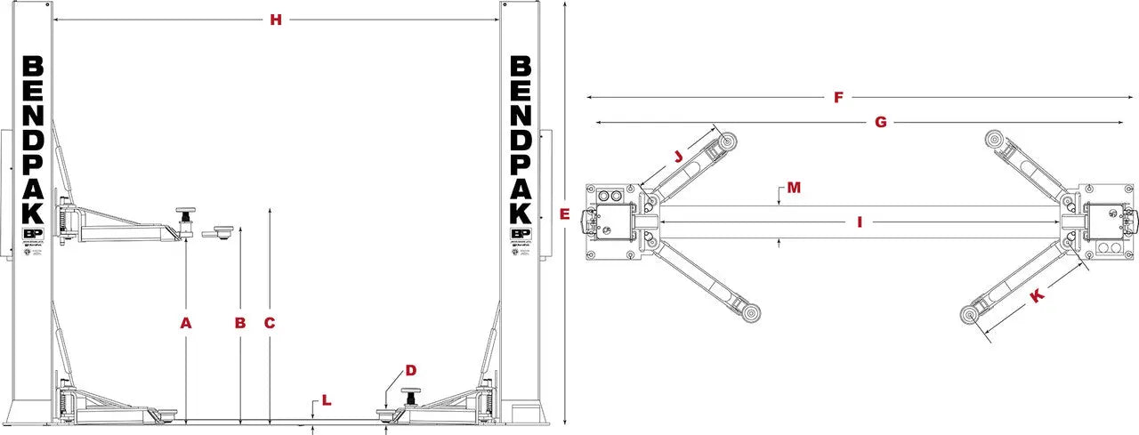 BendPak XPR-12FDL 12,000 lb. 2 Post Lift