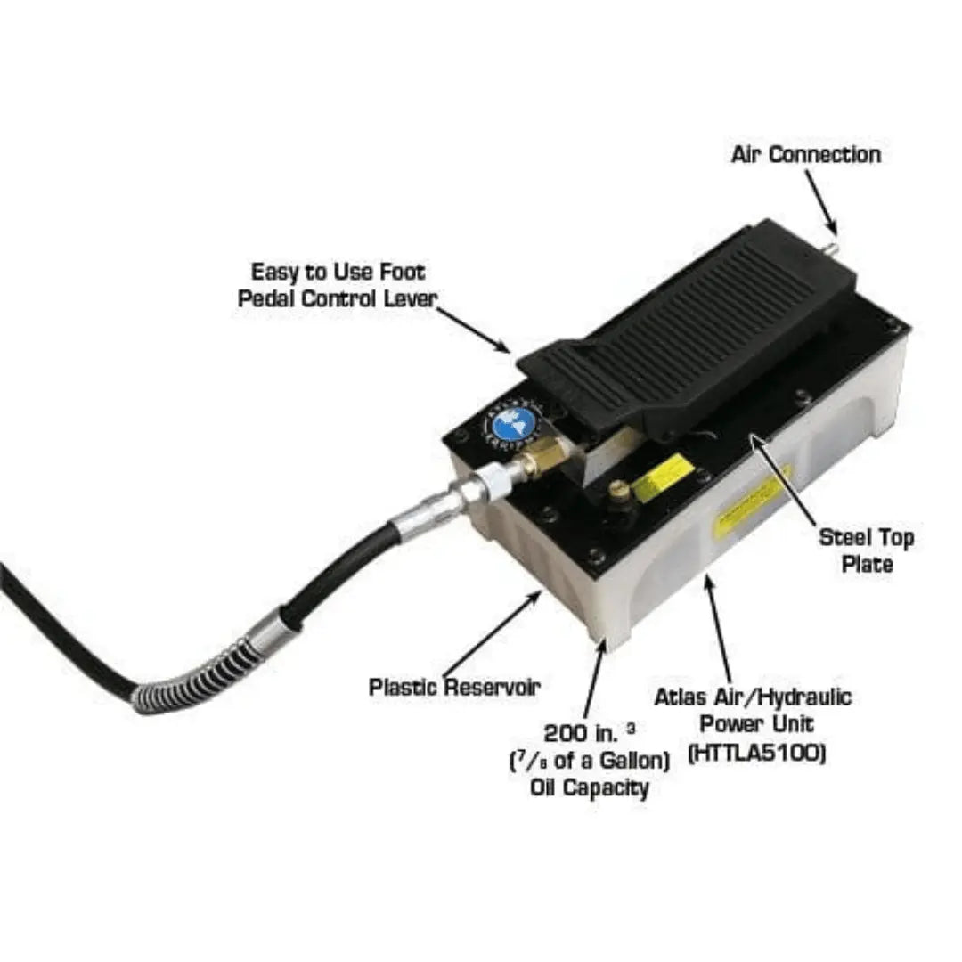 The Atlas® HI-RISE 1500 is one of the industry's most popular motorcycle and ATV lifts. This lift has a manufacturer rating of 1650 lbs. but we rate the lift at 1500 lbs., because we always under rate our weight capacities. The HI-RISE 1500 is powered by a high quality air/hydraulic pump which is included. This lift requires 100 PSI from an outside air source (not included).