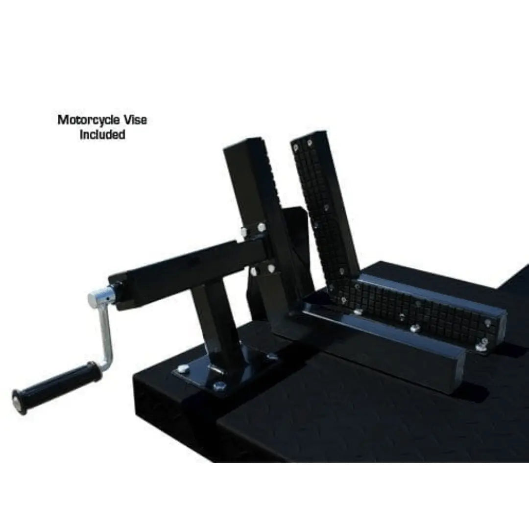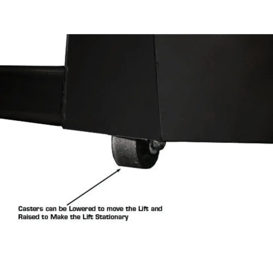 This is a complete motorcycle/ATV lift and besides the features above includes an adjustable front (padded) wheel vise and a removable rear drop out section. The Atlas® HI-RISE 1500 has a wide solid base for greater stability and which incorporates screw casters that can be lowered to move the lift and retracted when working.