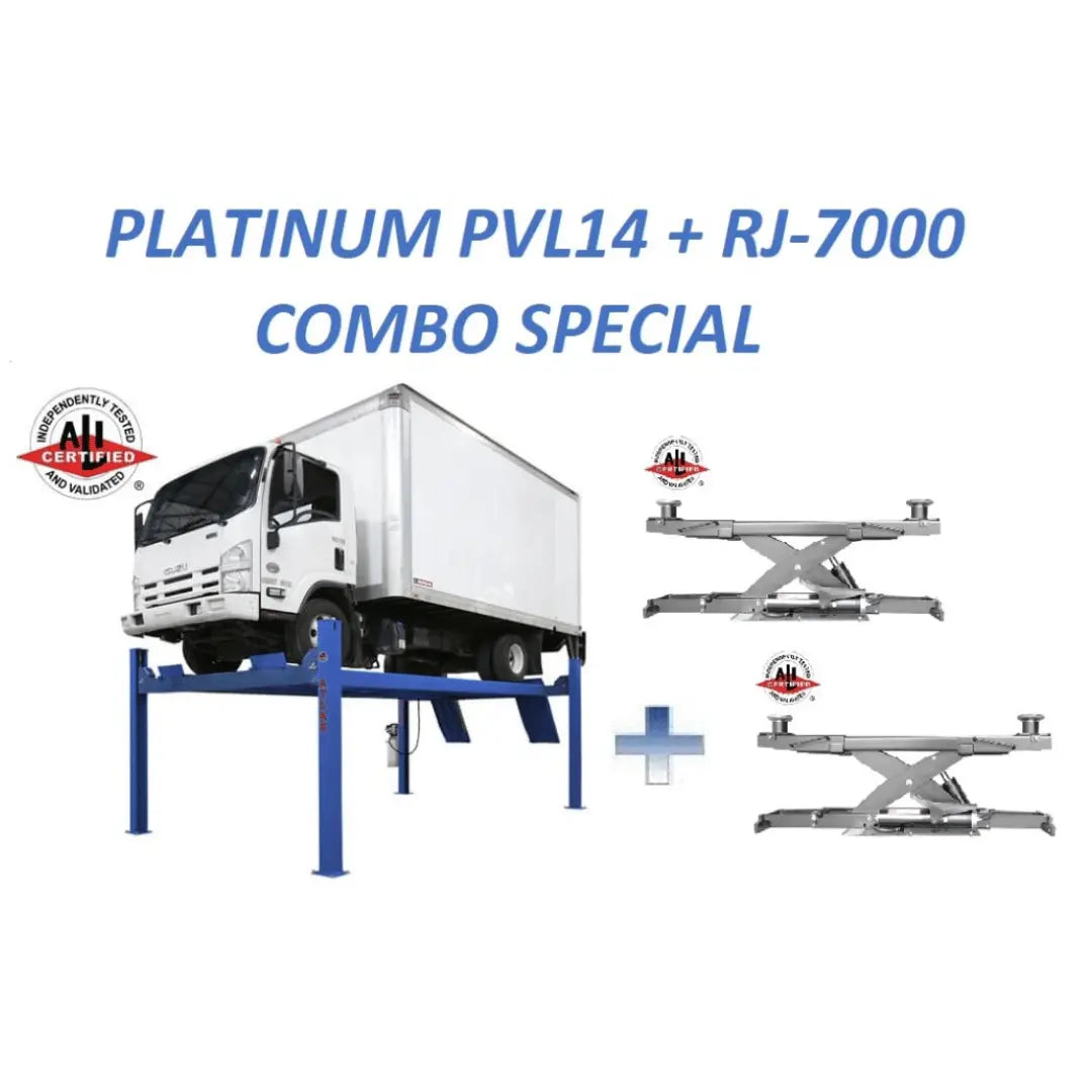 This combo package also includes two of the popular ALI Certified Atlas® Platinum RJ7000 Rolling bridge jacks. The jacks are perfect for raising a vehicle’s wheels off the lift’s runways in order to service tires and brakes.