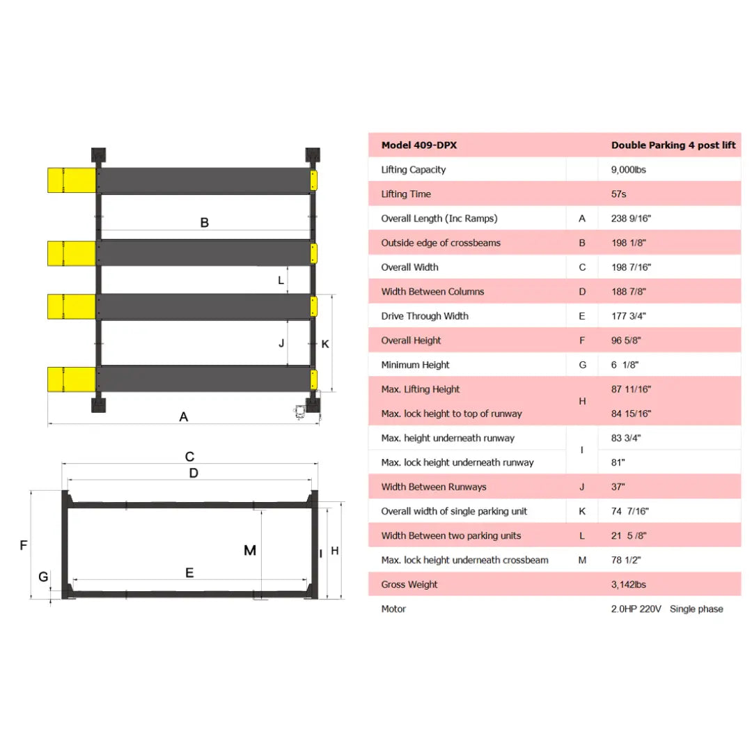 Amgo 409-DPX 9,000 lb Double Parking 4 Post Lift