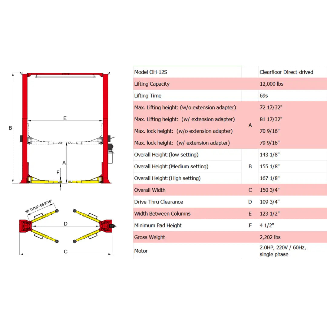 Elevate your automotive service capabilities with the AMGO OH-12S 2 Post Car Lift, a robust and versatile lifting solution designed to handle vehicles of up to 12,000 lbs. This lift is engineered to accommodate a broad range of automotive servicing needs, from routine maintenance to extensive repairs, making it an ideal choice for professional workshops and dedicated hobbyists alike. With its impressive capacity and advanced features, the OH-12S stands as a pinnacle of lifting technology, available exclusively through Mechanic Superstore.