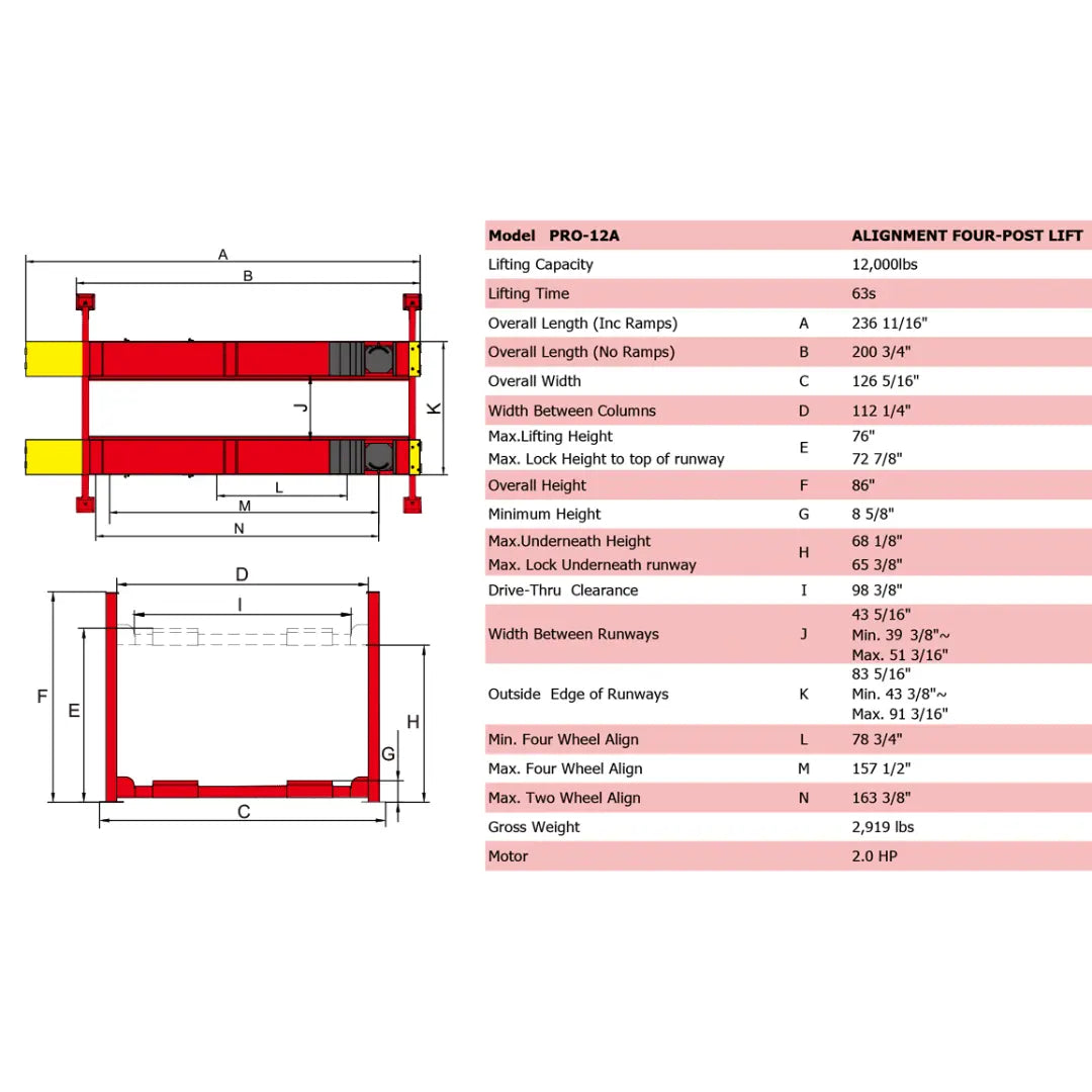 Whether you're enhancing your professional workshop or upgrading your home garage, the AMGO PRO-12A 12,000 lb. 4-Post Lift is a dependable choice that combines power, safety, and ease of use. Invest in the best for your automotive lifting needs and experience unparalleled performance and reliability.