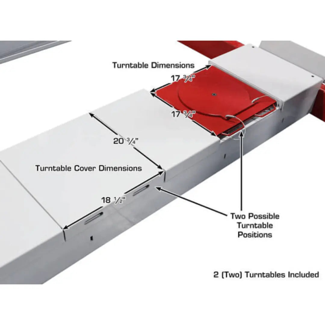 The Atlas® Platinum wheel alignment kit includes a set of heavy duty ball bearing slip plates along with two heavy duty turntables and all other necessary ramps and spacers. The alignment kit bolts on to your Atlas® Platinum PVL14 four post lift or other commercial grade 4-Post lift, turning it into a alignment lift.